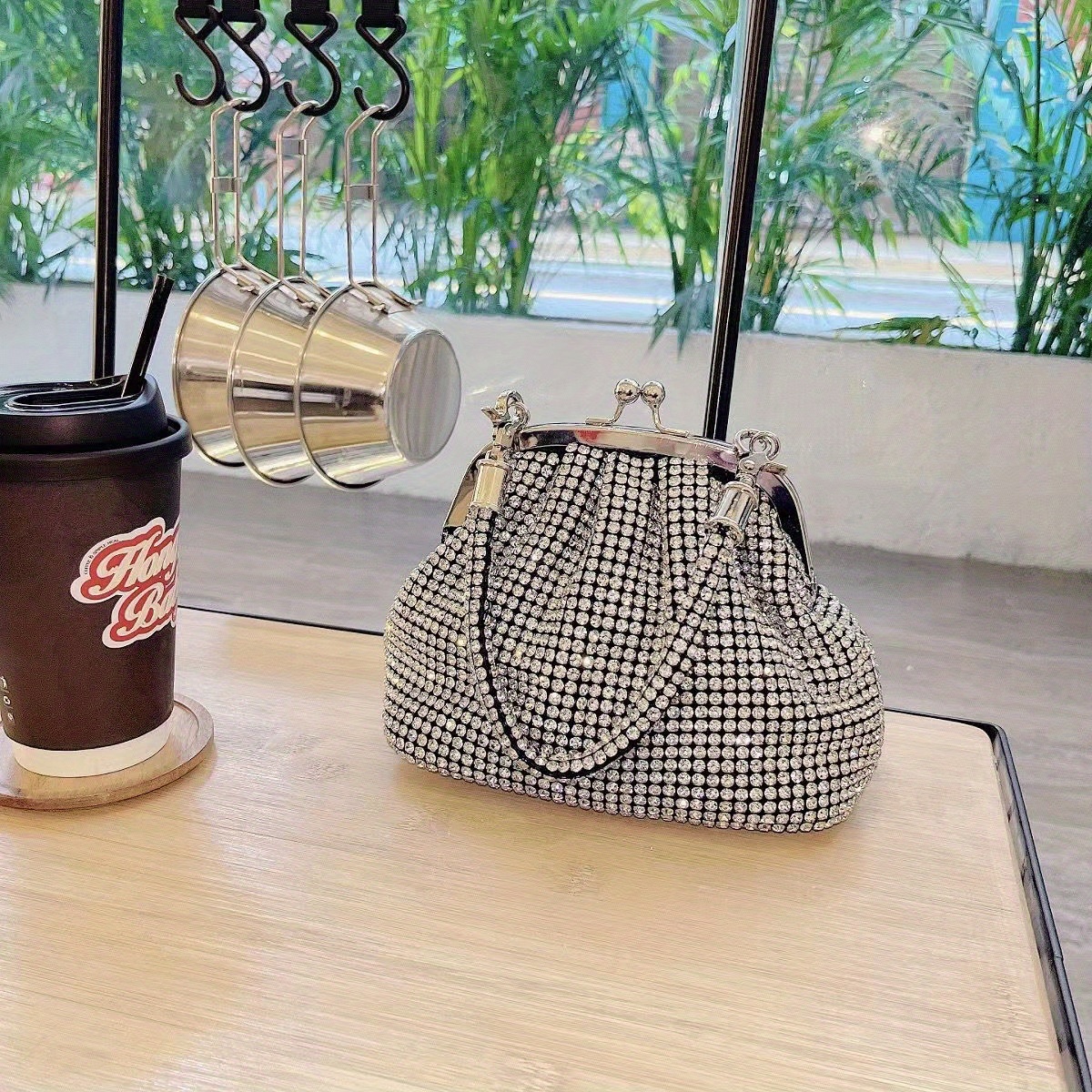 Découvrez la Mini pochette à strass scintillants